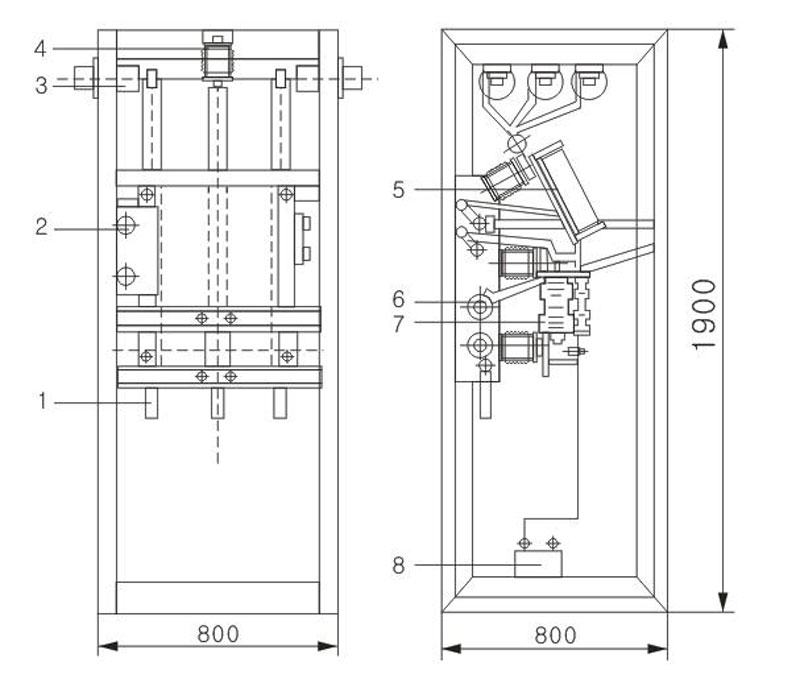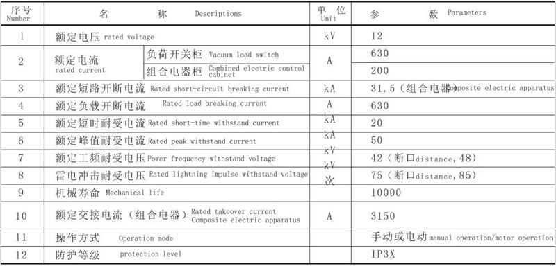 ●柜內主要原件真空負荷開關(壓氣式負荷開關,六氟化硫負荷開關),可以與熔斷器、接地開關、電壓互感器、電流互感器配套使用或單獨使用,滿足運行的不同要求,開斷負荷電流和短路電流及關合短路電流