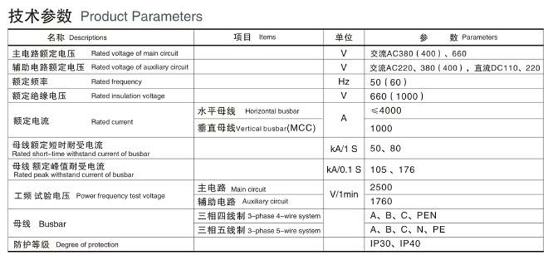 裝置主電路方案共33組118個規格(見下表},不包括由輔助電路的控制與保護的變化而派生的方案和規格,包括了發電、供用電和其它電力用戶的需要,額定工作電流為4000A.適合2500kVA及以下的配電變壓器選用。此外,為適應供用電提高功率因數的需
