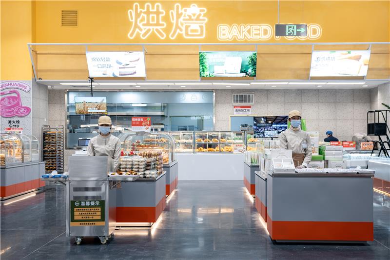 與未改造的永輝超市門店相比,世紀金源店改動不小。兼顧日常生鮮食品消費和節(jié)假日集中采購,是這家店呈現(xiàn)出得一大訴求。世紀金源店賣場布局更具空間感,烘焙、熟食、鮮肉、水果、蔬菜、水產(chǎn)、食品、百貨、酒飲、散裝零食等品類依次分布在賣場主動線上。精選出的近10000個SKU采用量販式陳列,使得整個賣場更像是一家倉儲店。永輝超市同時在賣場內設置了多個試吃點,日常為消費者提供主推單品試吃試飲,吸引其購買。其中鮮食加工區(qū)、生鮮區(qū)是兩個主力區(qū)域,承擔了提升差異化,培養(yǎng)顧客粘性的職能。鮮食加工涵蓋烘焙、熟食、餐飲等品類。永輝超市一方面借鑒引入了榴蓮千層、烤雞等網(wǎng)紅商品,給沒有接觸過會員店、但又能夠從小紅書等社交網(wǎng)絡平臺上了解到相關網(wǎng)紅品的消費者提前體驗。另一方面, 永輝超市也聯(lián)合當?shù)毓蹋霞芰擞袡C鮮花餅、甜皮鴨等區(qū)域特色商品。其中烘焙品類是永輝超市重點發(fā)力的增長品類。《第三只眼看零售》認為,這也是零售企業(yè)發(fā)力產(chǎn)品差異化,向制造型零售商靠攏的機會品類。因為烘焙消費的場景邊界正在模糊,逐漸從節(jié)日、紀念日滲透進人們日常生活中的零食、正餐。在此背景下,零售商提供購買方便、品類齊全的烘焙產(chǎn)品,培養(yǎng)了消費者“隨手帶”一份烘焙商品、隨吃隨買的習慣。而且,相比較烘焙專業(yè)店來說,零售賣場的烘焙品類更具性價比。生鮮品類是永輝超市的強項。結合產(chǎn)地倉優(yōu)勢后,世紀金源店進一步強化其新鮮感。例如門店內設置的步入式生鮮冷藏區(qū),具有兩個功能。一是陳列有100個左右的蔬菜單品,讓對新鮮程度要求最高的蔬菜保持穩(wěn)定低溫,以此減少損耗;二是發(fā)揮暫儲功能。例如預估銷量較大的賣場堆頭陳列生鮮品等即可暫存在冷藏區(qū)內,方便門店隨時補貨。《第三只眼看零售》注意到,世紀金源店內的生鮮品類均為預包裝銷售。其中超90%商品由永輝云南產(chǎn)地倉的加工倉自主完成,多重保障嚴控食品安全。而且,店中設有獨立肉品加工間,可以實現(xiàn)肉禽類產(chǎn)品冷藏、冷凍雙位一體,并能根據(jù)消費者需求實現(xiàn)現(xiàn)場切割。“生鮮品牌化能為商品帶來更可觀的附加值,例如產(chǎn)品生產(chǎn)標準化、更多溢價空間、原材料、品質保障、縮短消費者選擇路徑等。實際上現(xiàn)在不少零售企業(yè)也在著力推動自有品牌建設,并從低價賣點階段發(fā)展到高品質、性價比階段。”凱度消費者指數(shù)大中華區(qū)總經(jīng)理虞堅曾對《第三只眼看零售》分析稱。生鮮標品化程度提升后,也有利于企業(yè)做到線上線下每一個生鮮單品同條碼、同價格、同品質,從而迎合線上線下一體化運營需求。例如世紀金源店即可通過“自有渠道+第三方渠道”為消費者提供線上最遠20公里半徑內配送、最快30分鐘送達服務。此外,圍繞“全球+全國+本地”的垂直供應鏈,永輝結合當前消費趨勢及當?shù)叵M偏好,幾乎在每個產(chǎn)品類目中都打造出了“進口+全國+云南特色”的商品結構。就拿生鮮產(chǎn)品來說,永輝云南旗艦店引入了來自新西蘭的牛羊肉、進口龍蝦、帝王蟹等優(yōu)質進口生鮮產(chǎn)品,來自全國各優(yōu)質產(chǎn)區(qū)的新鮮蔬果,也增加了具有本地特色的云南火腿、牛干巴、天麻等地域農(nóng)副生鮮產(chǎn)品,最大程度滿足不同消費者需求。