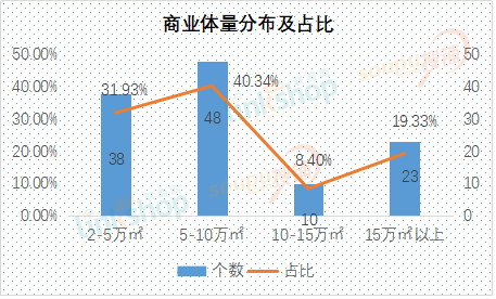 10-15萬項目供應(yīng)有10家,15萬方以上項目有23家。超15萬方的項目有天津王府井購物中心、石家莊天河·方圓薈購物中心等,以外來品牌開發(fā)商為主。