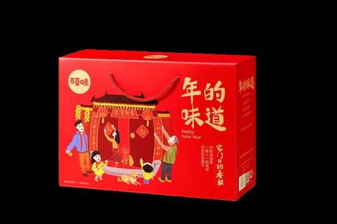 (百草味“年的味道”系列之家門口的春聯禮盒)