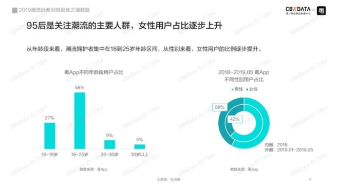 這與整個(gè)潮流文化消費(fèi)的圈層十分契合,“90后”、“95后”是潮牌的主要消費(fèi)群體,并且女性占比逐漸增加。