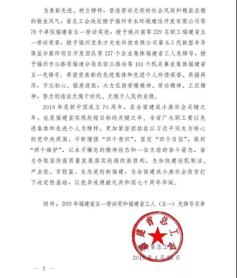 重磅!2019年福建省五一勞動獎先進集體與個人名單