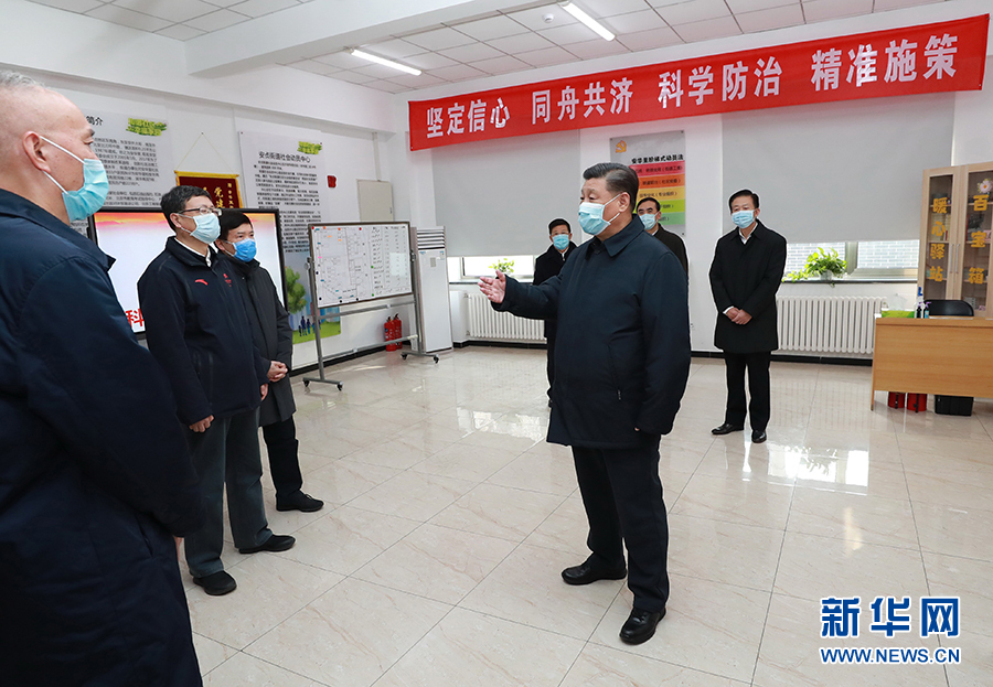 2月10日,中共中央總書記、國家主席、中央軍委主席習近平在北京調研指導新冠肺炎疫情防控工作。這是習近平在朝陽區安貞街道安華里社區,了解基層一線疫情聯防聯控情況。 新華社記者 龐興雷 攝